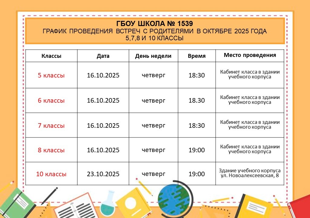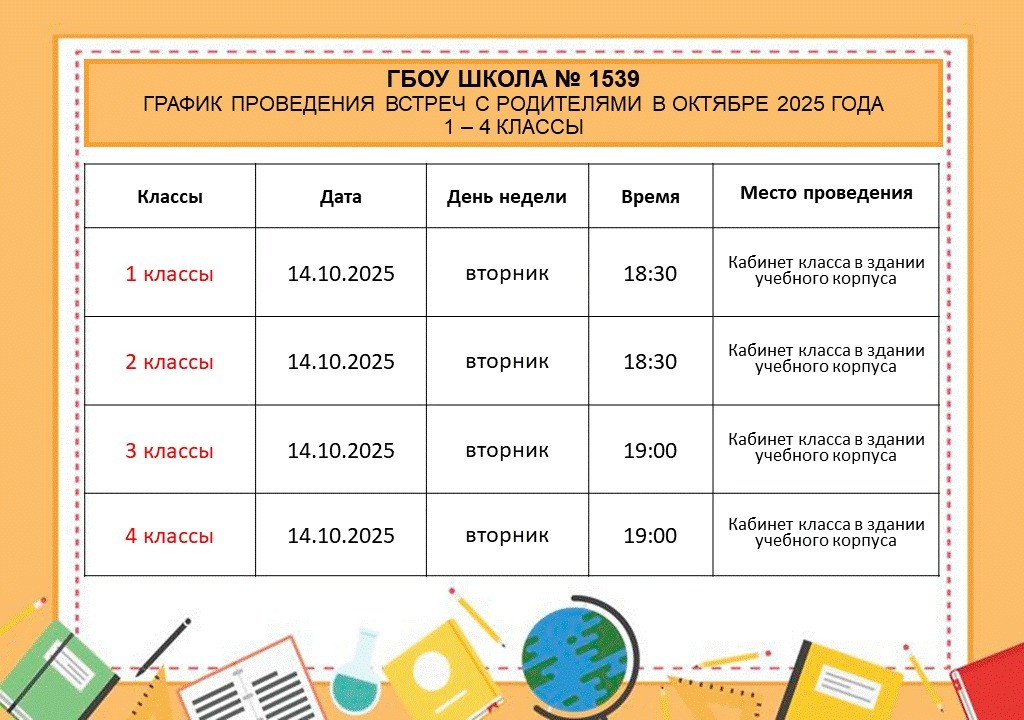 График проведения встреч с родителями в октябре 2025 года