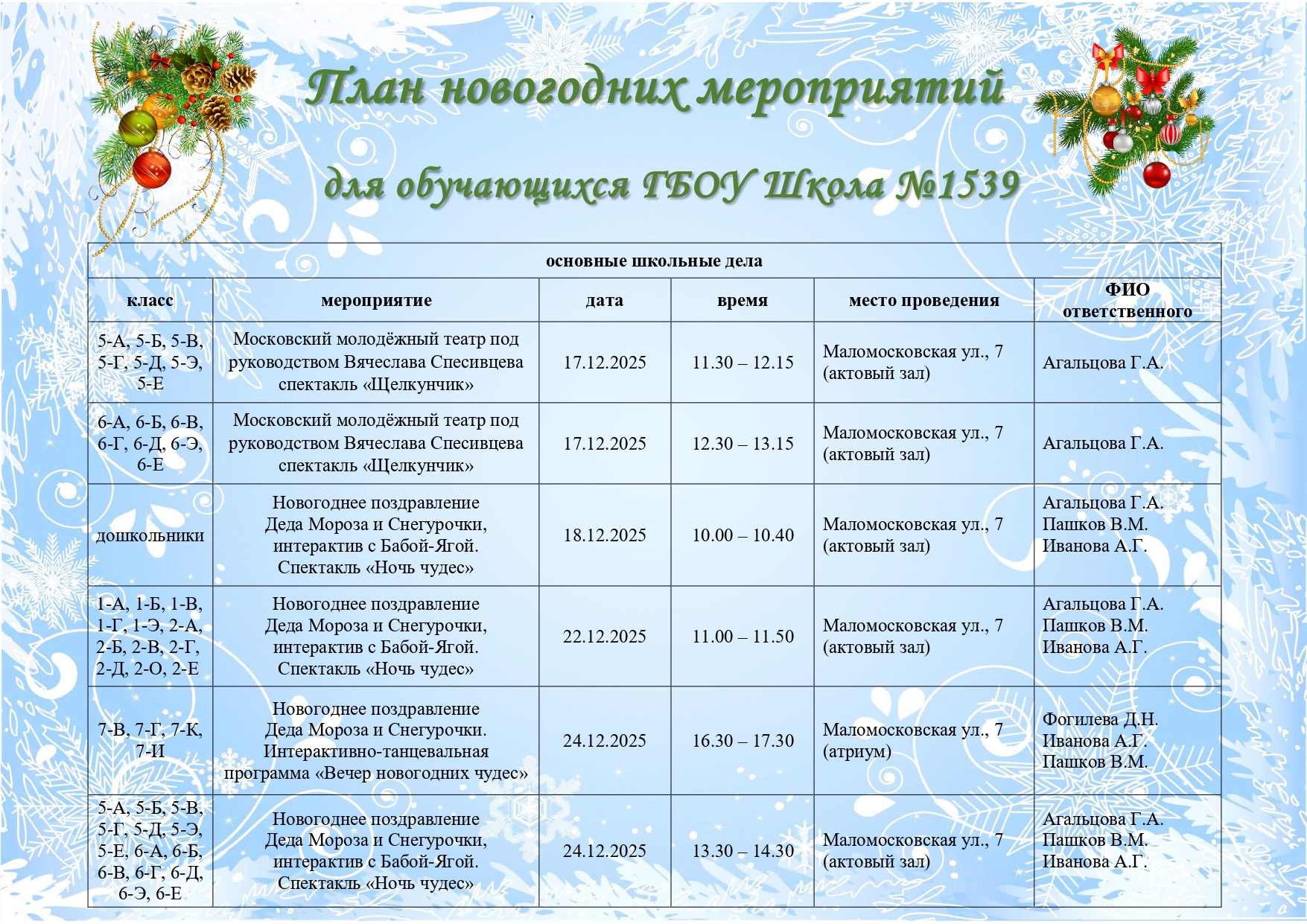 Приглашаем вас на новогодние мероприятия в нашей школе!